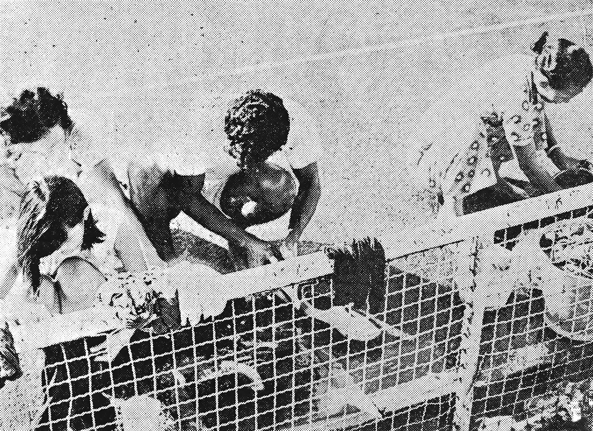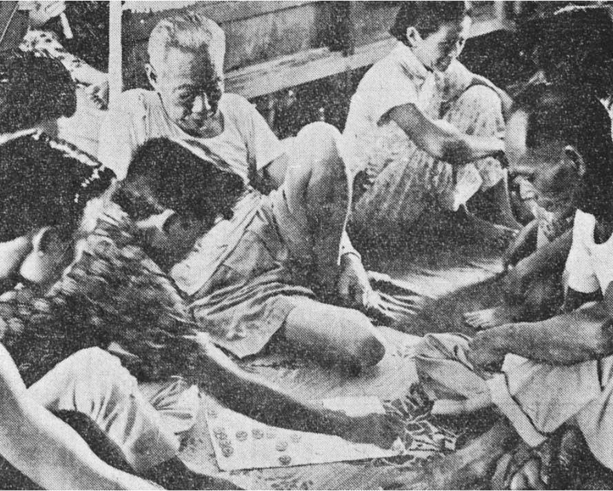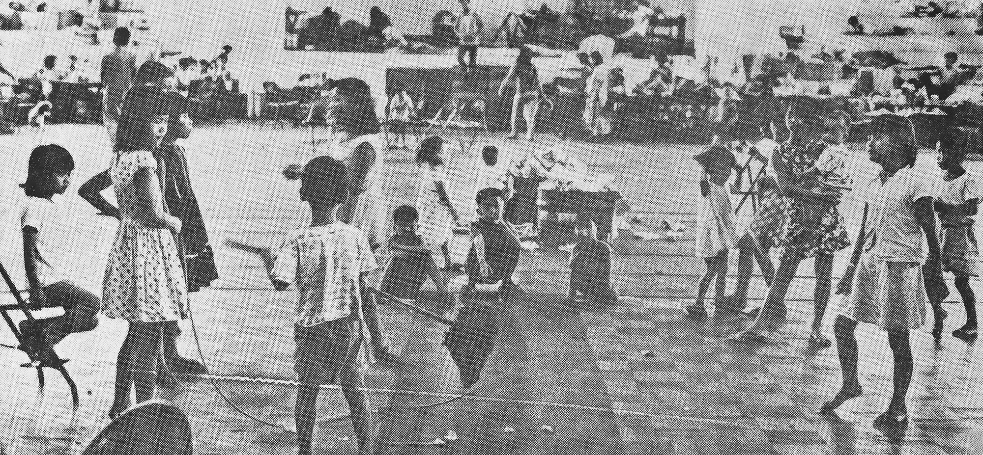 在默迪卡体育场俯身埋首洗脏衣, 这时当时灾民的生活写照之一