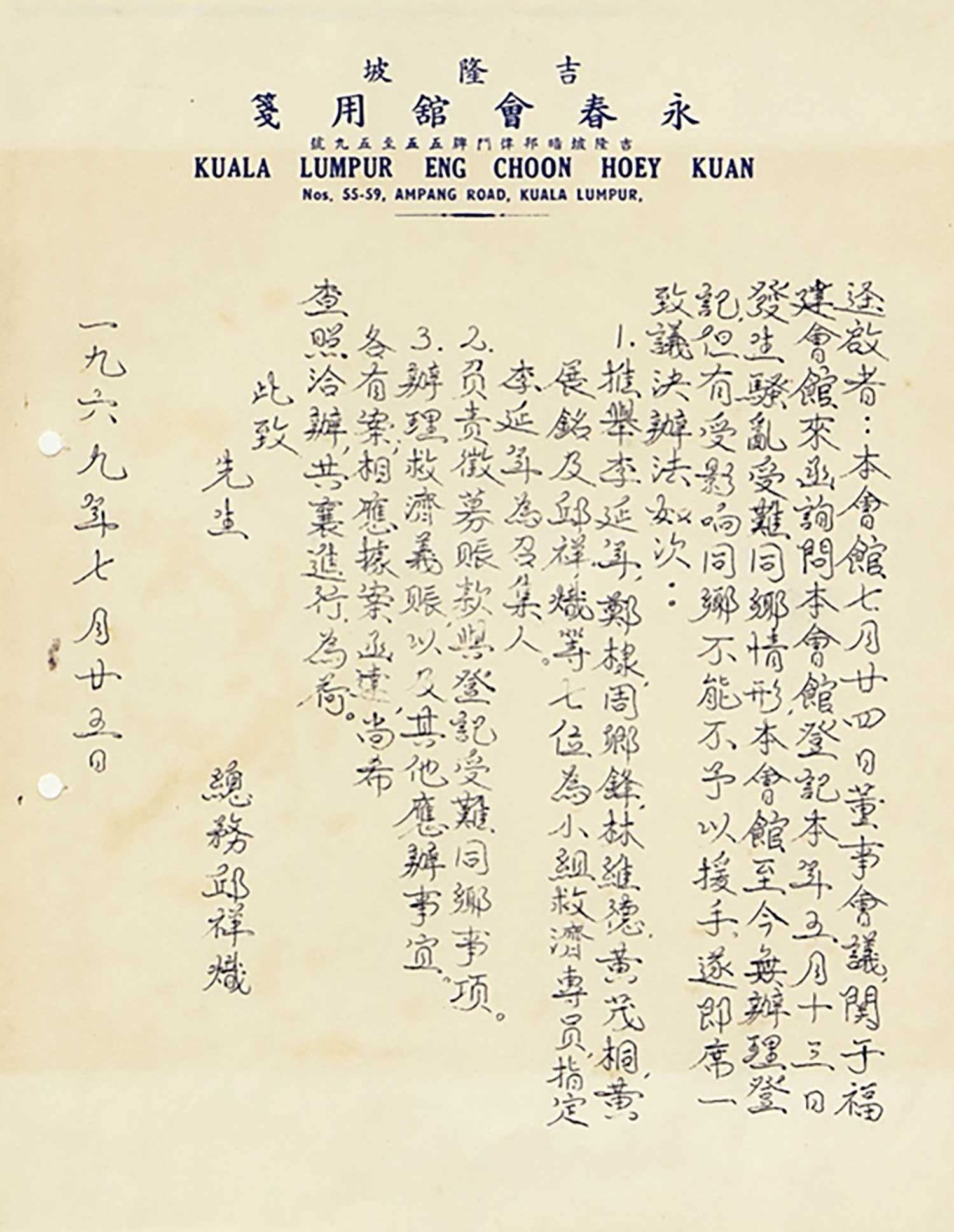 3〈吉隆坡永春会馆一九六九年七月二十四日董事会议〉,《吉隆坡永春会馆会议记录》,第3册,页166。
