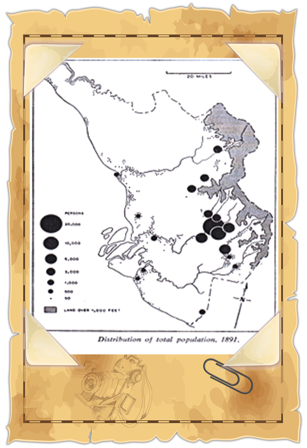十九世纪末,雪兰莪的人口主要集中在内陆的锡矿区附近。由图2-2可发现1891年,雪兰莪的聚落除了在雪兰莪河、巴生河及冷岳河的河口之外,内陆地区人口密集处为盛产锡矿的聚落。从图中可发现吉隆坡在当时已是雪兰莪人口最稠密的地区。而乌鲁雪兰莪和乌鲁冷岳也因开发了不少矿区而吸引了不少人口进驻。从表2-1可看出滨海地区的瓜拉雪兰莪、巴生及乌鲁雪兰莪的人口相对较少,主要原因是这些地区在当时并非主要的产锡区。整个雪州超过半数的华裔人口集中在吉隆坡和八打灵地区,9全州67%的华裔人口在那里聚居。华人聚居处主要在雪州的东半部的矿脉带。在十九世纪末的雪兰莪沿海地区的瓜拉雪兰莪、巴生,以及瓜拉冷岳的人口仅占雪州总人口的22%,显示锡矿在当时对雪州经济的重要性,更印証了雪州内陆地区的许多城镇是因锡矿开采而进行开发。