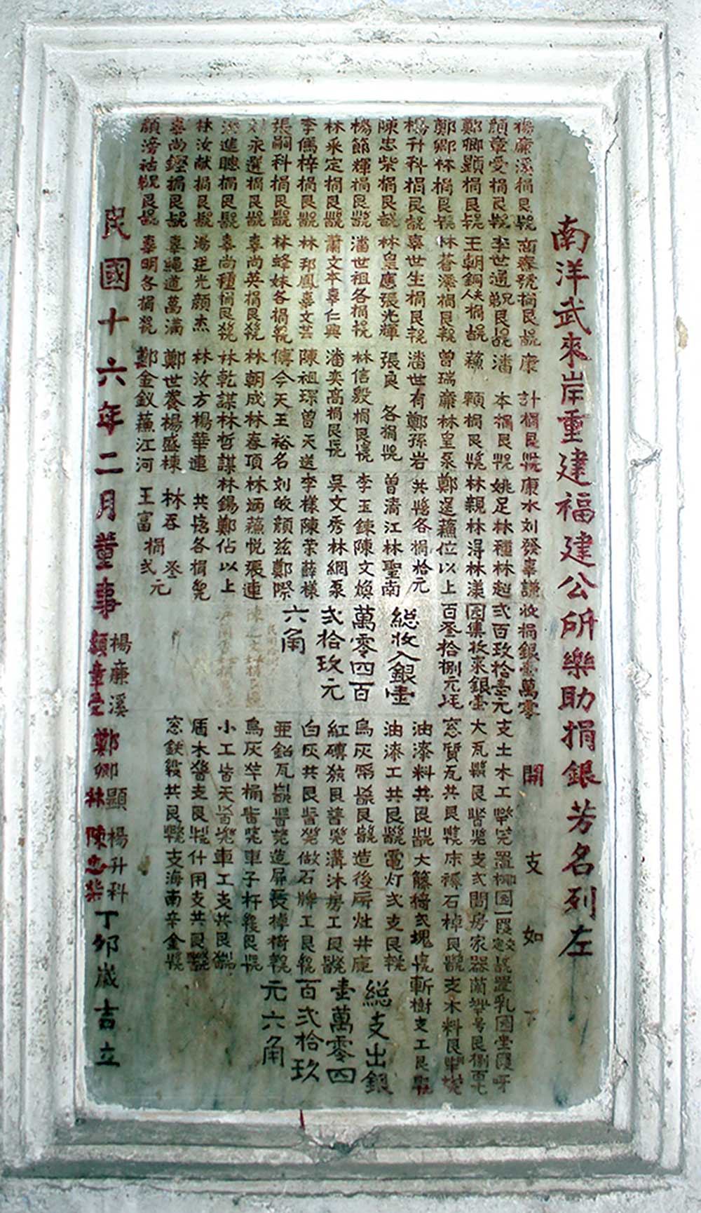 1927年武来岸福建会馆重建落成时的纪念碑文