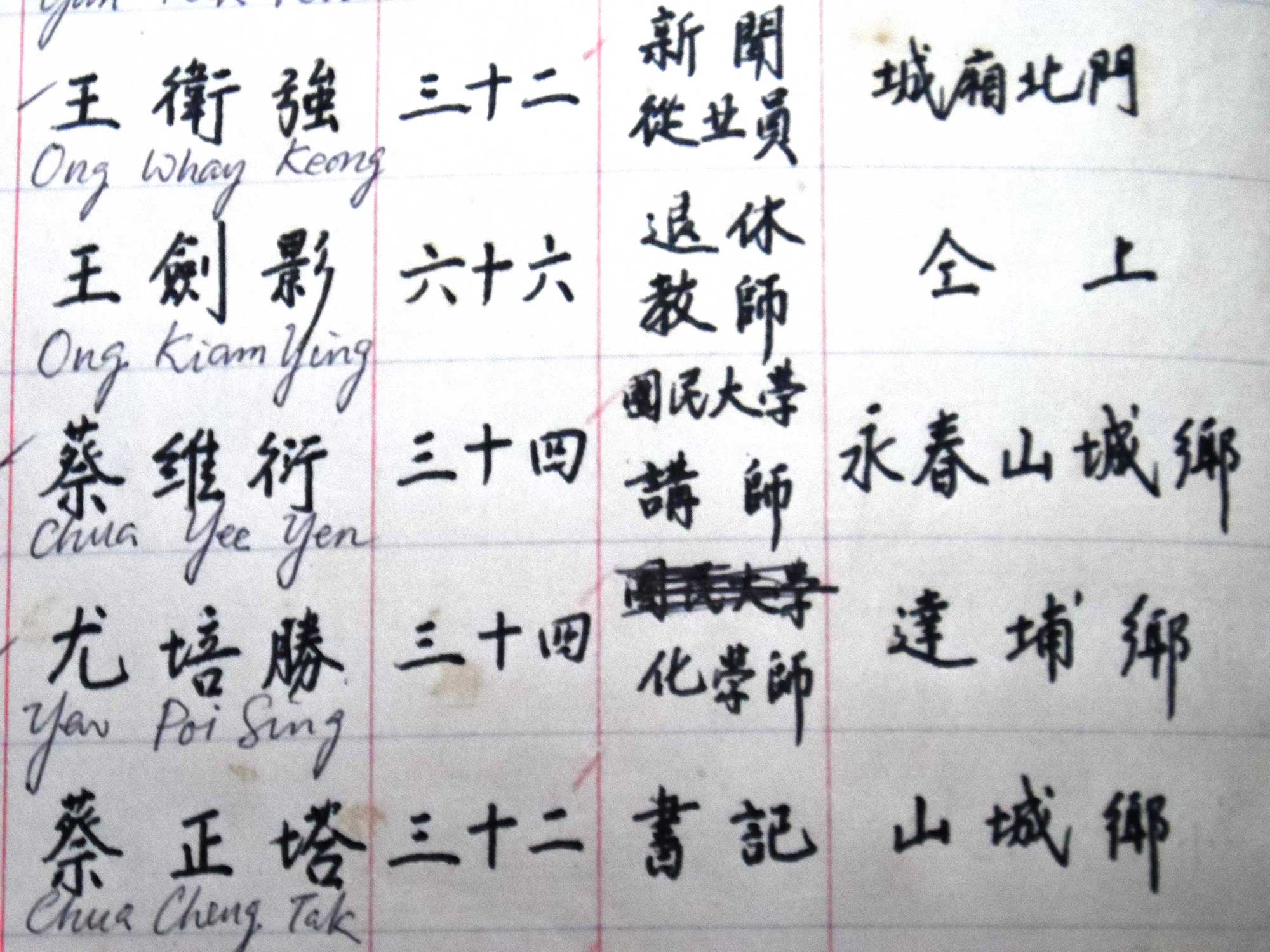 吉隆坡永春会馆会员名册保存了会员们的基本资料