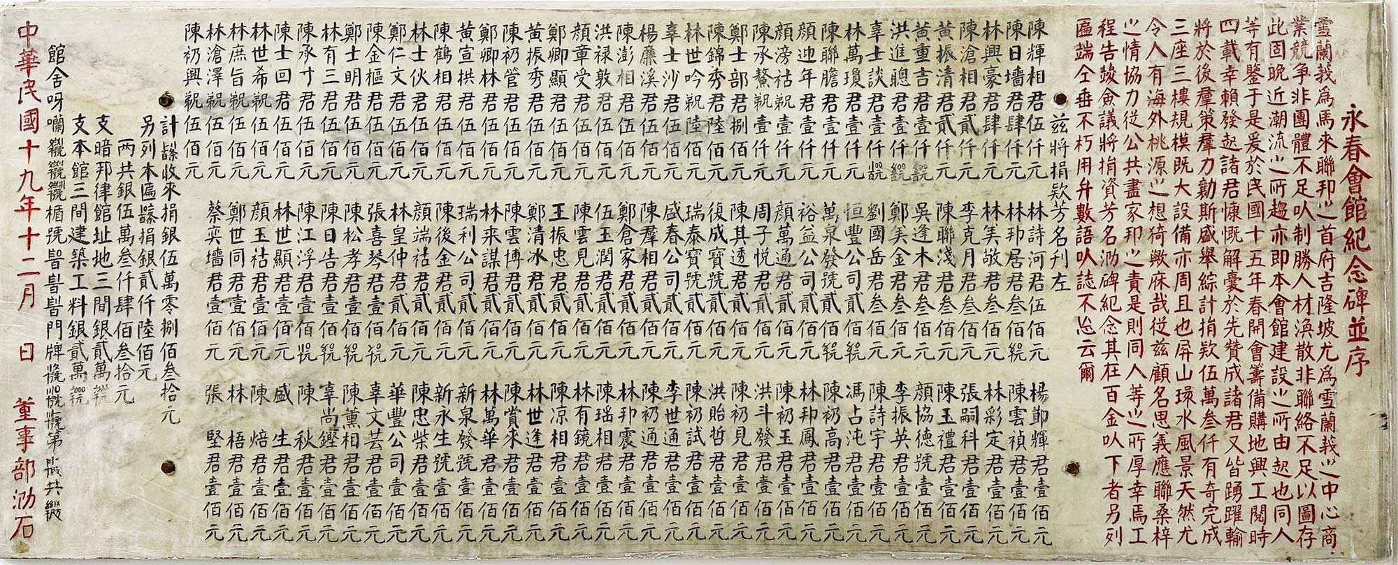14 永春会馆纪念碑文並序,目前放置在吉隆坡永春会馆礼堂。