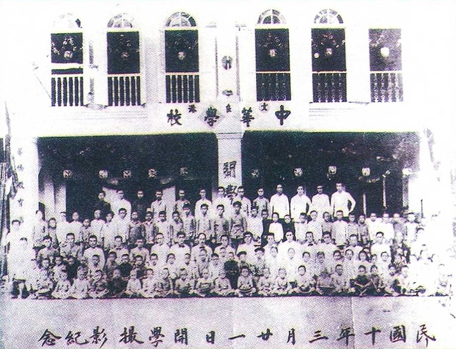 吉隆坡文良港中华学校成立于1919年, 黄重吉为其中重要的创始人,图为1921年开学礼上师生合影。