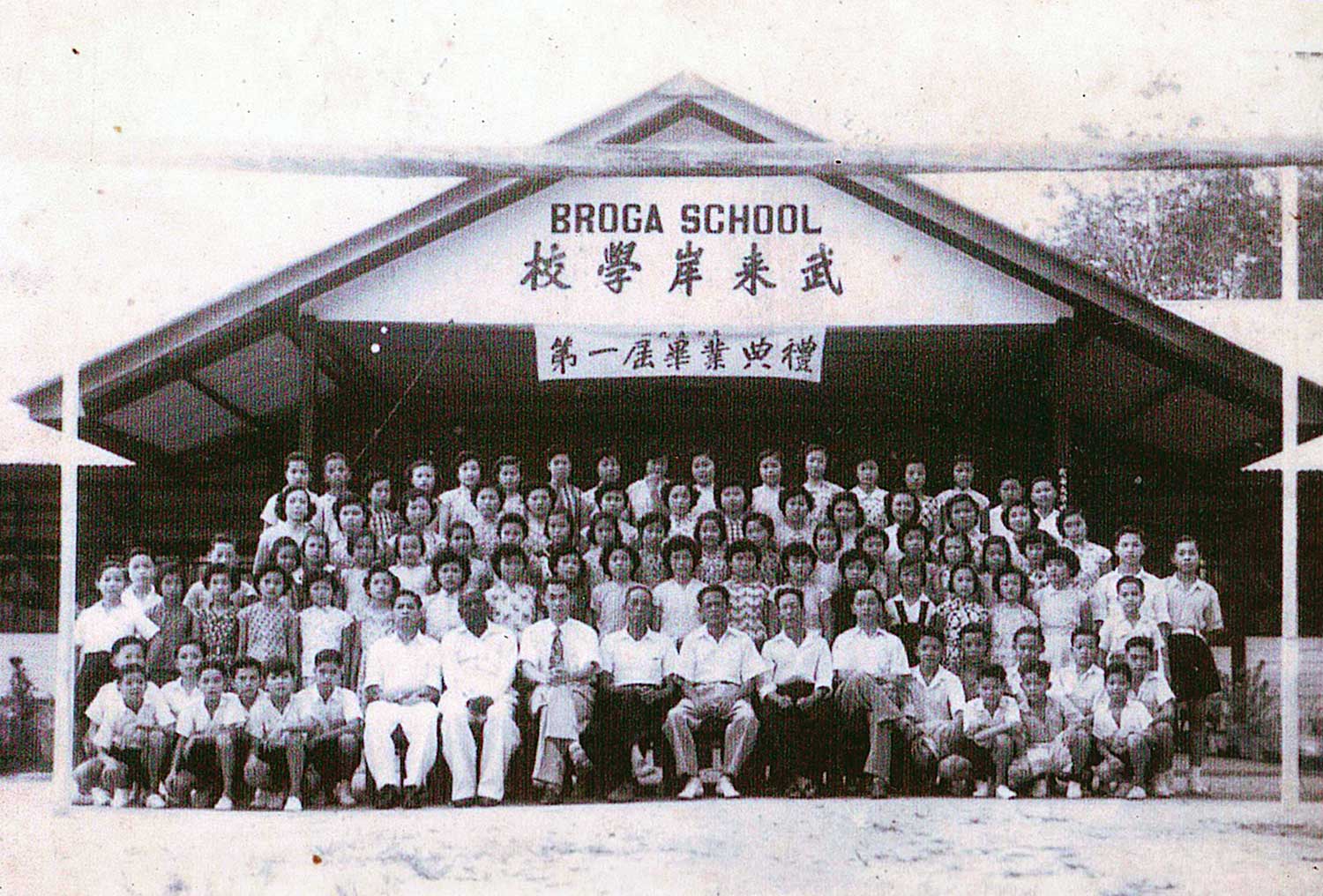 武来岸在二十世纪初已有闽、客帮公民学校、中华学校等 。二战后武来岸地区被英殖民政府列为首个“马共黑区”,华校被迫关闭, 至五十年代始获注册成立武来岸学校。图为1954年武来岸学校第一届全体毕业生合影