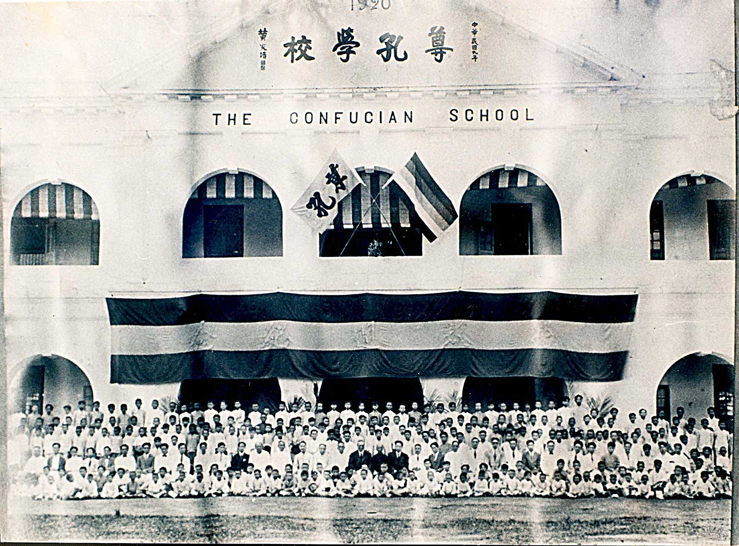 1920年尊孔迁入富丽堂皇的新校舍、所悬挂中华民国初期的五色旗。此校舍一直保留至今,目前由改制后的尊孔国中暂用,尊孔独中则在同一校园内另建教学大楼。