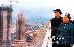 1984年,梁灵光陪同邓小平视察深圳
